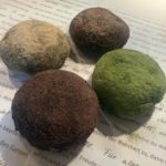 黒いホットドッグ、あげぱん、ポテト、ドリンク