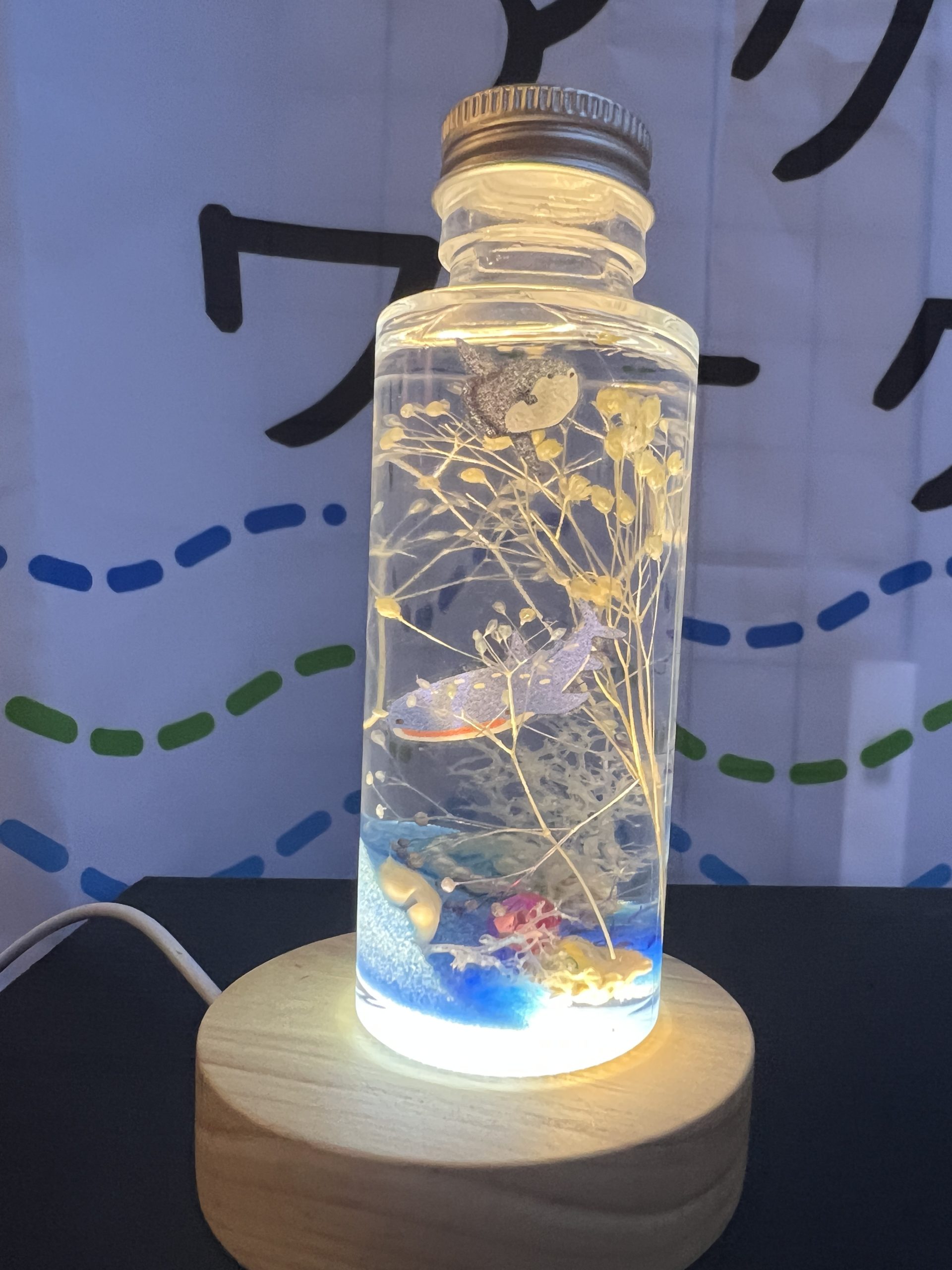 ひかりを吸収して光るビーズが入ったアクアリウムも用意しました!
