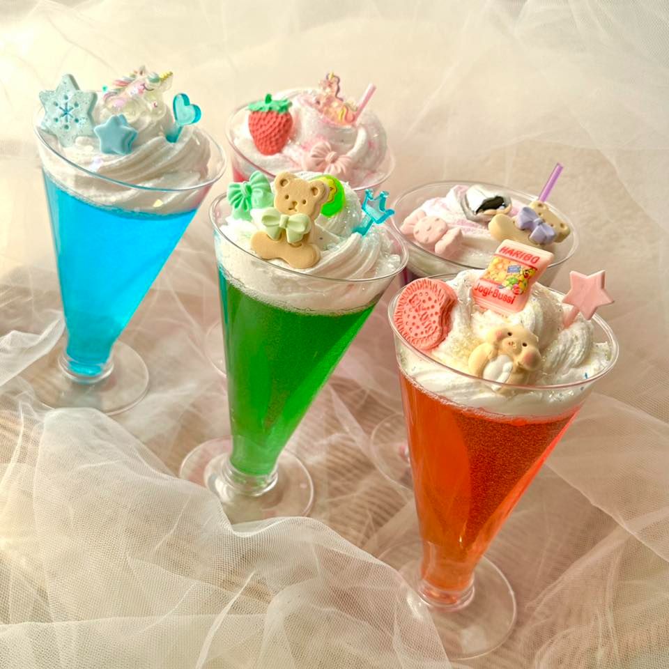 ドーナツスクイーズにソースやホイップパーツをデコレーション⭐︎オリジナルのスクイーズを作りましょう!その他、ヘアピンにもなるリボンステッキ、小物入れや、スライムケースになるドリンクデコをご用意しております!