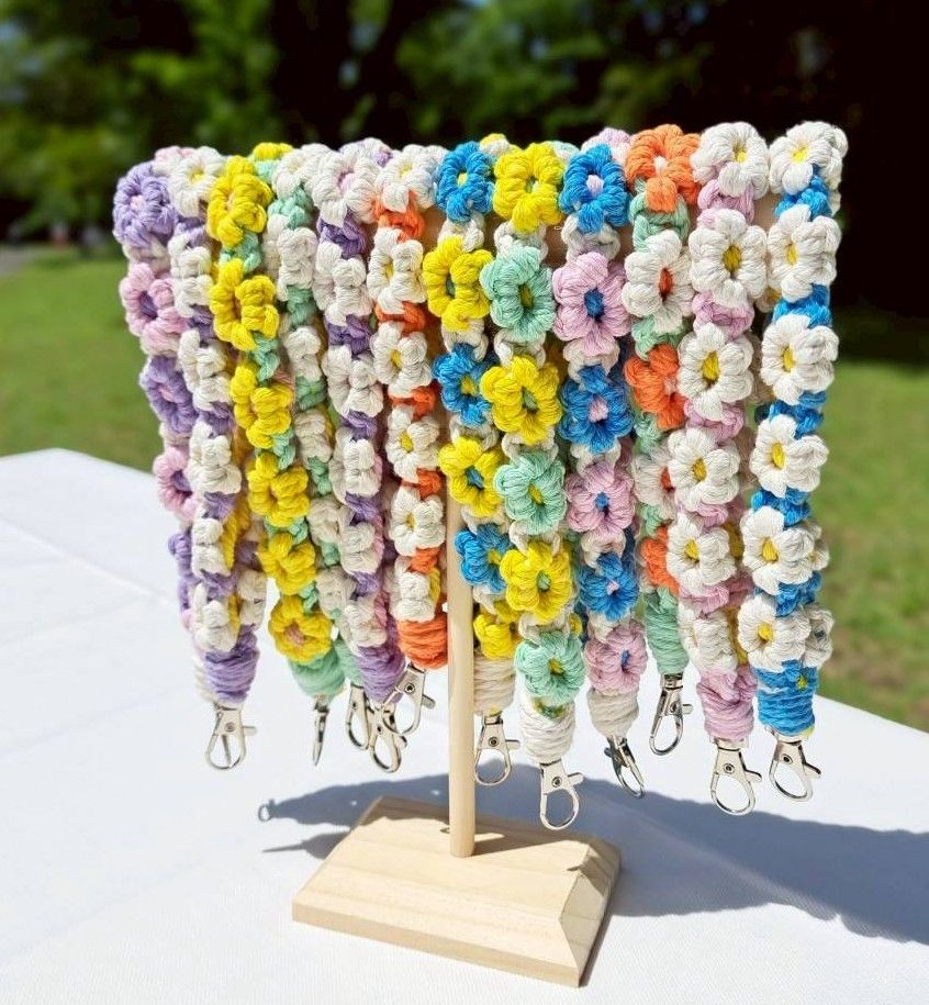 マクラメで小物からインテリアまで様々な物を作っております!オリジナルでお花のストラップを作ることもできます!
