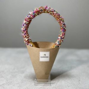 生地は北海道産小麦100%使用。風味豊かな特選カルピスバターを使用することで、素材の芳醇な美味しさを詰め込んだチュロス生地をその場で絞り出し、国産米油でカラッと揚げているので、外はサクサク中はモッチモチの軽い食感に仕上げています。素材の美味しさ・こだわりを存分に詰め込んだ新食感オリジナルチュロスを是非お召し上がりください。