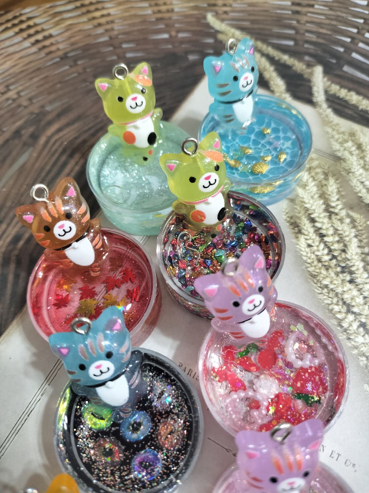 ・カシャカシャカラフルキーホルダー、ネックレス。イヤリング、ヘアゴムなどキラキラカラフルなキッズ小物を販売します。じゃらじゃらキーホルダーくじ¥300