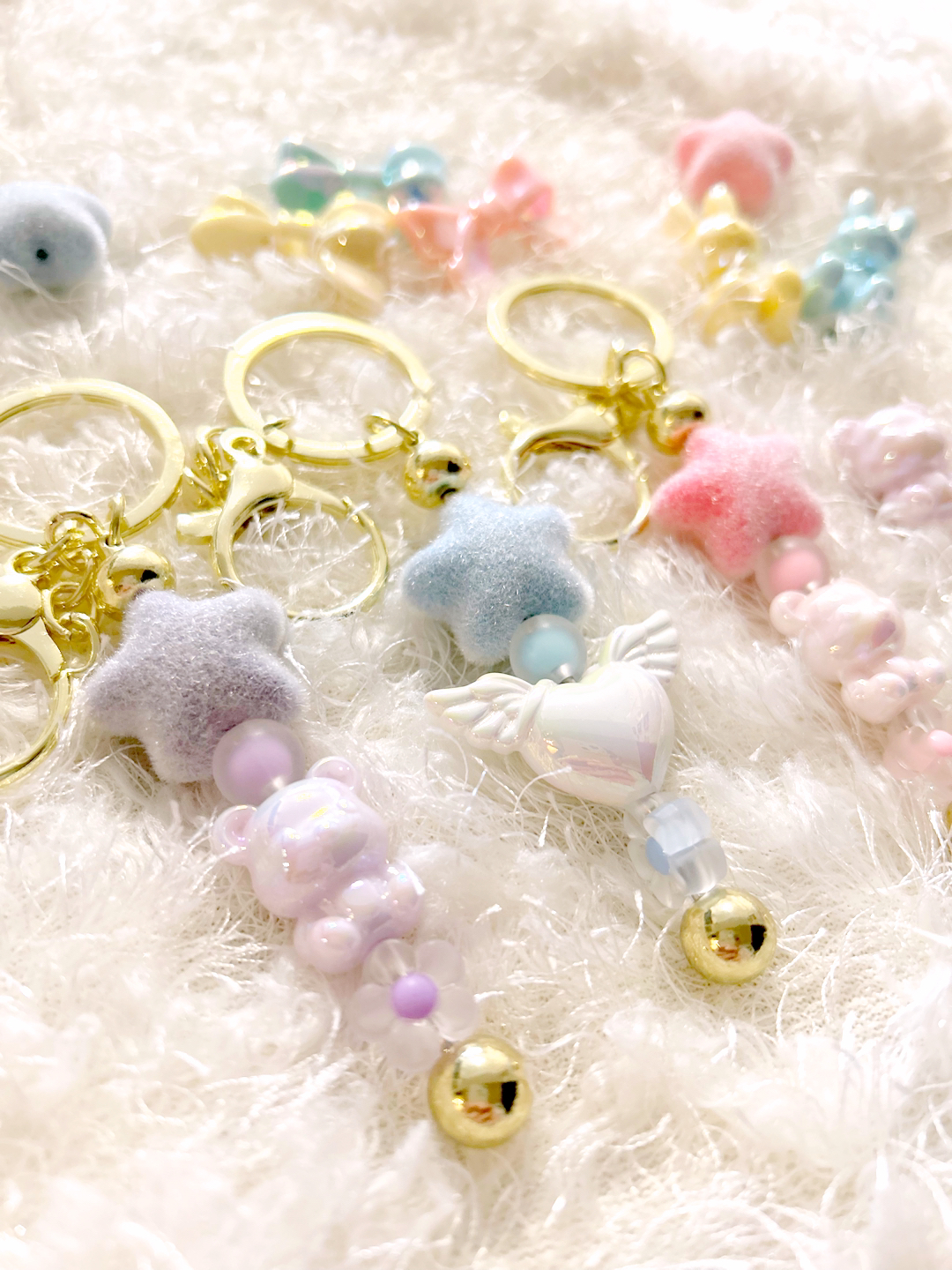 沢山のキラキラビーズの中から選んでオリジナルのチュールリボン、くまさんのしゃかもこキーホルダーがお作りいただけます!