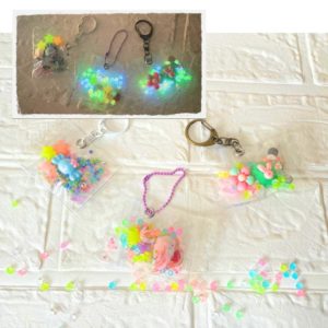 ジェルまたはオイルでライトキーホルダーやペンダント、ボトルづくりが楽しめます