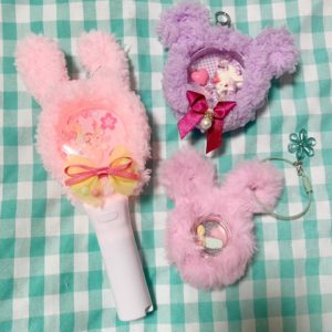 レジンで制作したキーホルダーやアクセサリーと、選んで頂いたパーツでお作りするヘアゴムを販売します。