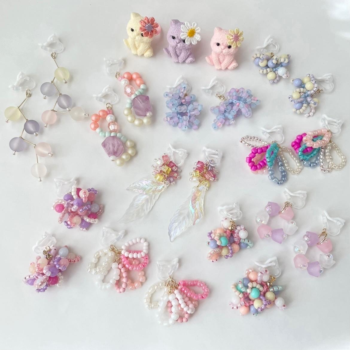 お好きなビーズを選んでキッズイヤリング(1ペア)やキーホルダーを作っていただきます。