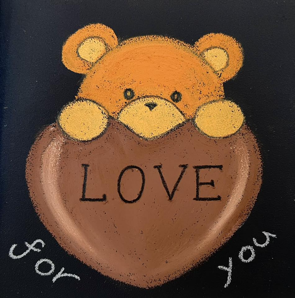 11×11cmのブラックボードにオイルチョークで絵を描き、指でくるくるブレンディング🌀。最後にマグネットボードに仕上げます。今回は4種類のデザインからお選びいただけます。下絵入りなので、小さなお子様でもぬり絵感覚で楽しく作れます。