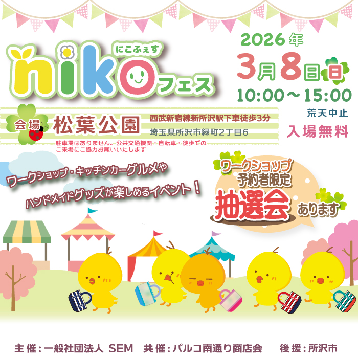 近日開催のイベント詳細 ◆4月18・19日(土日)所沢市/新所沢住宅公園【18日詳細】 【19日詳細】 ◆4月26日(日)西東京市/いこいの森 ◆5月3・4日(日・祝月)川口市/川口・鳩ヶ谷住宅公園【3日詳細】 【4日詳細】 ◆5月5・6日(祝火・祝水)さいたま市/浦和住宅公園【5日詳細】 【6日詳細】 ◆5月9・10日(土日)久喜市/久喜住宅公園 ◆5月9・10日(土日)鶴ヶ島市/鶴ヶ島住宅公園 ◆5月16・17日(土日)所沢市/航空記念公園 ●公式LINE開設しました!最新イベント情報が直接届きます。 3-8ic 2026.02.27
