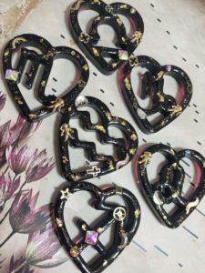 レジンで制作したキーホルダーやアクセサリーと、選んで頂いたパーツでお作りするヘアゴムを販売します。ヘアゴムは予約不要ですので、直接ブースにお越しください。