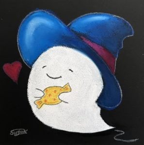 11×11cmのブラックボードにオイルパステルで描いて指でくるくる混ぜてグラデーションを出します。下絵入りなので、小さなお子様もぬり絵感覚で楽しく描けます。マグネットに仕上げた作品を冷蔵庫などに貼ってお楽しみください。