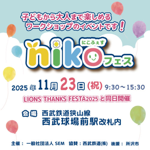 所沢・西武鉄道狭山線 西武球場前駅(駅改札内)で、家族で楽しめるイベント「nikoフェス」開催します。