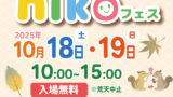 近日開催のイベント詳細 2026年 ◆1月17・18日(土・日 2日間開催) 鶴ヶ島市/鶴ヶ島住宅公園【17日詳細】 【18日詳細】 ◆1月17・18日(土・日 2日間開催) 久喜市/久喜住宅公園【17日詳細】 【18日詳細】 ◆1月24・25日(土・日 2日間開催) 所沢市/新所沢住宅公園 【24日詳細】 【25日詳細】 ◆2月15日(日) さいたま市/浦和住宅公園 ◆2月21・22日(土・日 2日間開催) 所沢市/西武ドーム前 ◆3月14日(土) 台東区/さかもと朝顔広場 ●公式LINE開設しました!最新イベント情報が直接届きます。 【開催報告】2025年11月16日(日)所沢・航空公園 nikoフェス 所沢方面・埼玉県内イベント 2025.11.17 秋晴れの穏やかな天気に恵まれ、パークフェスと同時開催にて、ニコフェスを開催いたしました。 たくさんの皆様にご来場いただき大盛況で終えることができました。 ご来場頂きました皆様、御出店いただきました皆様、ありがとうございました。 次回は来週、西武球場前駅構内にての開催と、西東京いこいの森での同時開催となります。 皆様のご来場をお待ちしております。